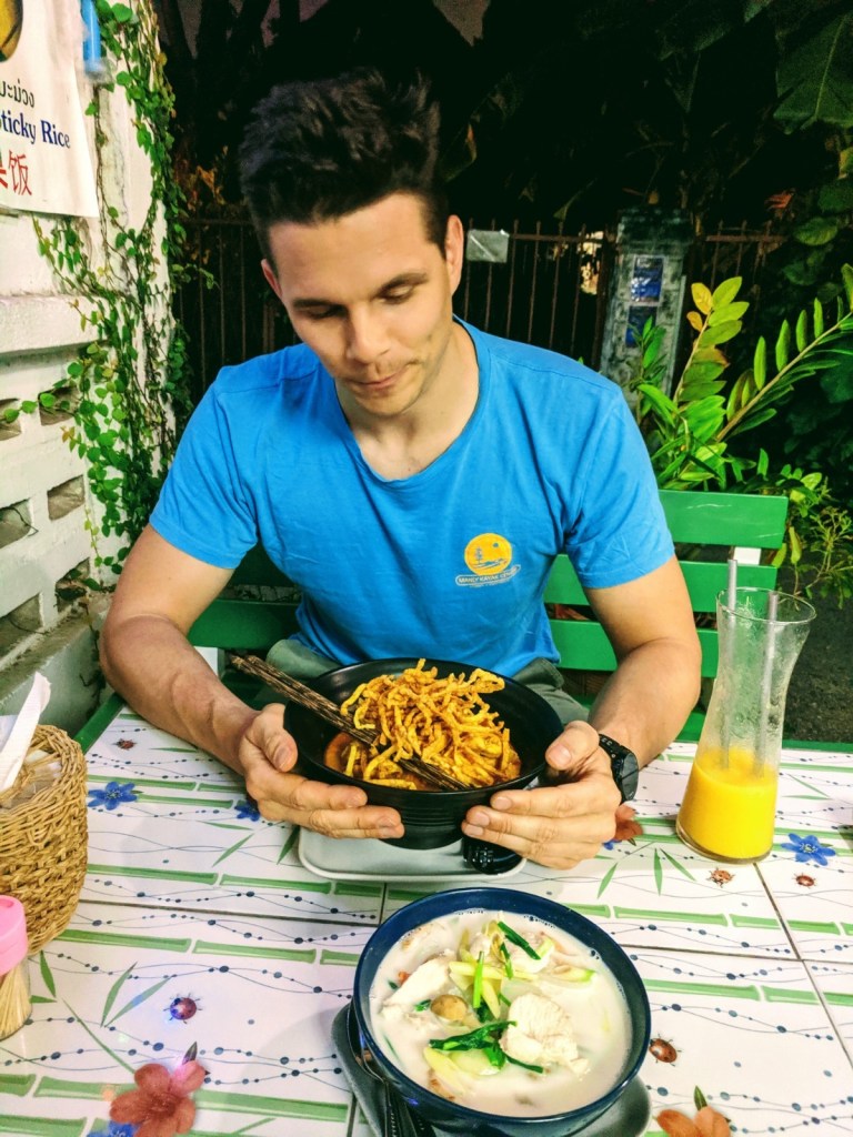 Walking off the platform at 7am in Chiang Mai felt much more relaxed than Bangkok – and we noticed the price drop immediately! We spent our first day wandering the streets and figuring out the local cuisine. We stopped for lunch at a local hotspot and tried the famous northern Thai dish Khao Soi – we were hooked and spent the next 5 days trying to find the best Khao Soi in Chiang Mai.