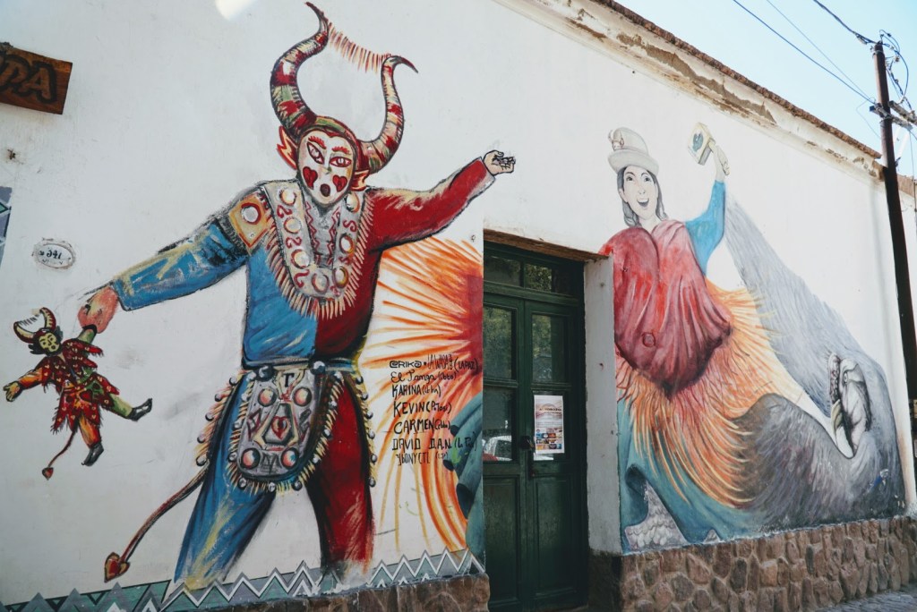 Throughout our three nights in Tilcara we saw, joined and were woken by the carnival celebrations marching through the streets. Various groups would sing, dance and make music as they made their way around town with their colourful “El Diablos” draped in mirrors dancing and picking people out of the crowd. Traffic on the tiny one way streets would quickly crawl to a stop as the troop made their lap of town.