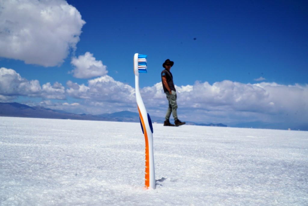 We felt like school kids – our eyes pealed out the windows looking at the incredible outdoors. Soon we could see the salt lakes in the distance – they never seemed to get much closer because the perspective was so strange.