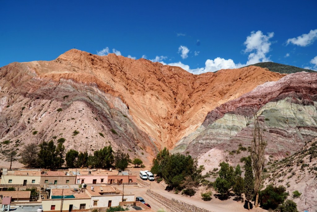 As we could not take the infamous Ruta 40 from Tilcara to Cachi we decided to go back via Salta. On the drive we found a few more stops we missed on our way up so our drive back south was as interesting as the first time North. We stopped in the town of Purmamarca – home to the hill of Seven colours (not 14). It was a very cute village nestled at the base of a very colourful hill – it had loads of handicrafts and of course empenadas!